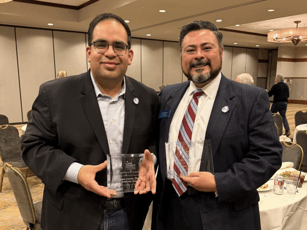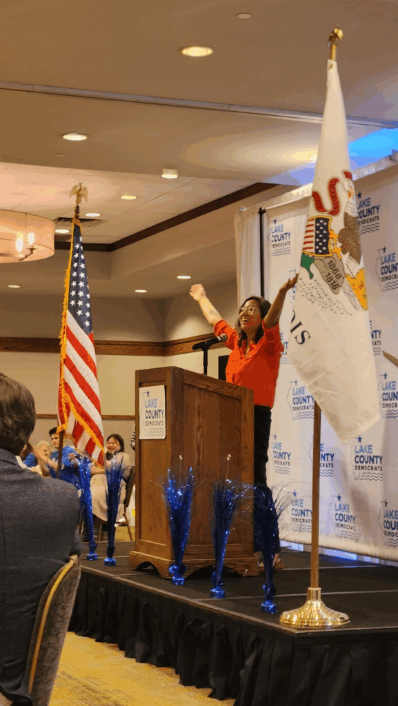 Nearly 225 people heard from more than two dozen elected officials and candidates — Democrats in office or running for US Senate, US House, statewide office, state legislator, countywide positions, and local office. Several township chairs, activists, longtime volunteers — and some new folks — enjoyed time with like-minded Democrats. Our Keynote Speaker was Christian Mitchell, JB Pritzker’s running mate and our next Lieutenant Governor. It was exciting to hear from such a rising star and an important leader for Illinois now and in the future. Thank you, Christian, for joining us in Lake County! Special thanks go out to our award winners — Leadership Award recipient Lake County Clerk Anthony Vega, Trailblazer Award winner Antioch trustee and Lake County Board candidate Jose Martinez, and Volunteer of the Year Colleen Jenn. We’re so thankful for your hard work, and so proud to have you with Lake Dems. “Shades of Blue” is about recognizing the gains we’ve made in Lake County as Democrats, and areas where we have more to do. Let’s use our Awards Dinner as a springboard into 2026. It’s clearer and clearer that Democrats reflect the values of Lake County, and we will continue to show that next election.